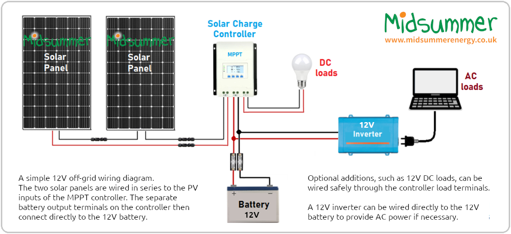 12v dc fan light etc. Any 12v solar panel kit supplied by sunstore solar panels are very straight forward to fit, and come supplied with full 12v solar panel kit instructions. 12v solar lithium battery bank wiring diagram. Wiring pv panel to charge controller, 12v battery & 12vdc load. Ceiling fan wiring diagram blue wire.